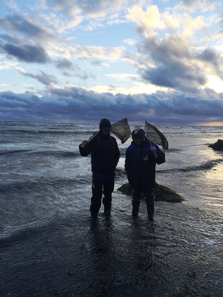 Wo aber versteckt sich denn nun das kostbare Harz? Im Schwemmgut. Dort wo sich Tang und Muschelschalen mit dem schwarzen Rollholz verknoten, verfängt sich auch der Bernstein. Es lohnt sich also, beherzt das salzige Seegras zu durchwühlen. Einheimische warten allerdings nicht darauf, bis die verwitterten Holzstücke und Muschelfelder an den Strand gespült werden. Mit Wathose, Kescher und Stirnlampe ausgerüstet, fischen ambitionierte Sammler das Schwemmgut bereits im seichten Wasser bei Sonnenaufgang ab.